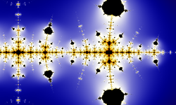 The Collatz conjecture: one way to illustrate its complexity is to extend the iteration from the natural numbers to the complex numbers. The result is a fractal, which (in accordance with universality) resembles the Mandelbrot set.