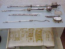 Torah reading (Hebrew: קריאת התורה, K'riat HaTorah ; "Reading [of] the Torah") is a Jewish religious ritual that involves the public reading of a set of passages from a Torah scroll. The term often refers to the entire ceremony of removing the Torah scroll (or scrolls) from the ark, chanting the appropriate excerpt with special cantillation, and returning the scroll(s) to the ark. It is distinct from academic Torah study.