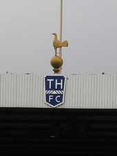 Since the 1921 FA Cup final the Tottenham Hotspur crest has featured a cockerel. Harry Hotspur (from whom the club is said to have taken its name) wore riding spurs and his fighting cocks were fitted with spurs which can be seen in the crests. In 1909 a former player named William James Scott made a bronze cast of a cockerel standing on a football to be placed on top of the West Stand and since then the cockerel and ball have been the major part of the club's identity.