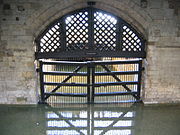 The water entrance to the Tower is often referred to as Traitor's Gate because prisoners accused of treason such as Queen Anne Boleyn and Sir Thomas More passed through it. Traitor's Gate cuts through St Thomas's Tower and replaced Henry III's watergate in the Bloody Tower behind it. Behind Traitors Gate in the pool was an engine used to raise water to a cistern located on the roof of the White Tower. The engine was originally powered by the force of the tide or by horsepower and eventually by steampower; this was adapted around 1724 to drive machinery for boring gun barrels. It was removed in the 1860s. The Tudor Timber Framing seen above the great arch of Traitor's Gate dates from 1532 and was restored in the 19th century.