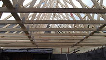 Wood is used in the construction of buildings, bridges, trackways, piles, poles for power lines, masts for boats, pit props, railway sleepers, fencing, hurdles, shuttering for concrete, pipes, scaffolding and pallets. In housebuilding it is used in joinery, for making joists, roof trusses, roofing shingles, thatching, staircases, doors, window frames, floor boards, parquet flooring, panelling and cladding.