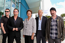 Since the early 1980s, the members of U2—as a band and individually—have collaborated with other musicians, artists, celebrities, and politicians to address issues concerning poverty, disease, and social injustice.