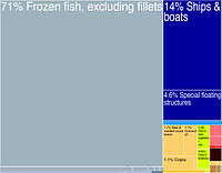 Graphical depiction of Vanuatu's product exports in 28 colour-coded categories.