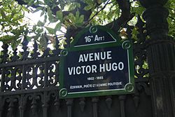 The Avenue Victor-Hugo in the XVIème arrondissement of Paris bears Hugo's name, and links the Place de l'Étoile to the vicinity of the Bois de Boulogne by way of the Place Victor-Hugo. This square is served by a Paris Métro stop also named in his honour. A number of streets and avenues throughout France are likewise named after him. The school Lycée Victor Hugo was founded in his town of birth, Besançon in France. Avenue Victor-Hugo, located in Shawinigan, Quebec, Canada, was named to honour him.