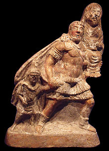 A 1st-century terracotta expressing the pietas of Aeneas, who carries his aged father and leads his young son