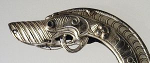 One form of sculpture found in many prehistoric cultures around the world is specially enlarged versions of ordinary tools, weapons or vessels created in impractical precious materials, for either some form of ceremonial use or display or as offerings. Jade or other types of greenstone were used in China, Olmec Mexico, and Neolithic Europe, and in early Mesopotamia large pottery shapes were produced in stone. Bronze was used in Europe and China for large axes and blades, like the Oxborough Dirk.