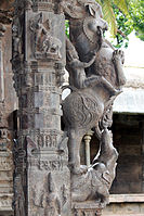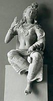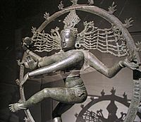 The pink sandstone Hindu, Jain and Buddhist sculptures of Mathura from the 1st to 3rd centuries CE reflected both native Indian traditions and the Western influences received through the Greco-Buddhist art of Gandhara, and effectively established the basis for subsequent Indian religious sculpture. The style was developed and diffused through most of India under the Gupta Empire (c. 320-550) which remains a "classical" period for Indian sculpture, covering the earlier Ellora Caves, though the Elephanta Caves are probably slightly later. Later large-scale sculpture remains almost exclusively religious, and generally rather conservative, often reverting to simple frontal standing poses for deities, though the attendant spirits such as apsaras and yakshi often have sensuously curving poses. Carving is often highly detailed, with an intricate backing behind the main figure in high relief. The celebrated bronzes of the Chola dynasty (c. 850–1250) from south India, many designed to be carried in processions, include the iconic form of Shiva as Nataraja, with the massive granite carvings of Mahabalipuram dating from the previous Pallava dynasty.