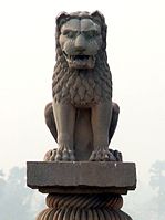 The first known sculpture in the Indian subcontinent is from the Indus Valley civilization (3300–1700 BC), found in sites at Mohenjo-daro and Harappa in modern-day Pakistan. These include the famous small bronze female dancer. However such figures in bronze and stone are rare and greatly outnumbered by pottery figurines and stone seals, often of animals or deities very finely depicted. After the collapse of the Indus Valley civilization there is little record of sculpture until the Buddhist era, apart from a hoard of copper figures of (somewhat controversially) c. 1500 BCE from Daimabad. Thus the great tradition of Indian monumental sculpture in stone appears to begin relatively late, with the reign of Asoka from 270 to 232 BCE, and the Pillars of Ashoka he erected around India, carrying his edicts and topped by famous sculptures of animals, mostly lions, of which six survive. Large amounts of figurative sculpture, mostly in relief, survive from Early Buddhist pilgrimage stupas, above all Sanchi; these probably developed out of a tradition using wood that also embraced Hinduism.