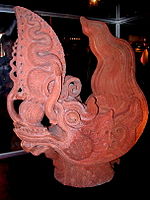 The sculpture of the region tends to be characterised by a high degree of ornament, as seen in the great monuments of Hindu and Buddhist Khmer sculpture (9th to 13th centuries) at Ankor Wat and elsewhere, the enormous 9th century Buddhist complex at Borobudur in Java, and the Hindu monuments of Bali. Both of these include many reliefs as well as figures in the round; Borobudur has 2,672 relief panels, 504 Buddha statues, many semi-concealed in openwork stupas, and many large guardian figures. In Thailand and Laos, sculpture was mainly of Buddha images, often gilded, both large for temples and monasteries, and small figurines for private homes. Traditional sculpture in Myanmar emerged before the Bagan period. As elsewhere in the region, most of the wood sculptures of the Bagan and Ava periods have been lost. In later periods Chinese influence predominated in Vietnam, Laos and Cambodia, and more wooden sculpture survives from across the region.