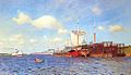 The Volga, widened for navigation purposes with construction of huge dams during the years of Joseph Stalin's industrialization, is of great importance to inland shipping and transport in Russia: all the dams in the river have been equipped with large (double) ship locks, so that vessels of considerable dimensions can actually travel from the Caspian Sea almost to the upstream end of the river.