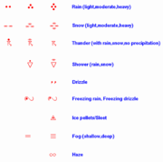 Aviation interests have their own set of weather maps. One type of map shows where VFR (visual flight rules) are in effect and where IFR (instrument flight rules) are in effect. Weather depiction plots show ceiling height (level where at least half the sky is covered with clouds) in hundreds of feet, present weather, and cloud cover. Icing maps depict areas where icing can be a hazard for flying. Aviation-related maps also show areas of turbulence.