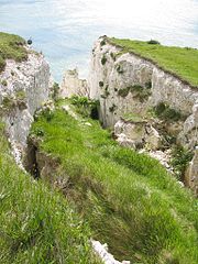 Evidence of erosion along the cliff top