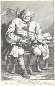 William Hogarth (10 November 1697 – 26 October 1764) was an English painter, printmaker, pictorial satirist, social critic and editorial cartoonist who has been credited with pioneering western sequential art. His work ranged from realistic portraiture to comic strip-like series of pictures called "modern moral subjects". Much of his work poked fun at contemporary politics and customs; illustrations in such style are often referred to as "Hogarthian".