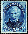 The US Post Office released the first postage stamp issue honoring Zachary Taylor on June 21, 1875, a full 25 years after his death. In contrast, Lincoln first appeared on US postage stamps in 1866, only one year after his death while James Garfield would be honored with a postage stamp only seven months after his assassination. Sixty three years later, in 1938 Taylor would appear again on a US Postage stamp, this time on the 12-cent Presidential Issue of 1938. Taylor's last appearance (to date, 2010) on a US postage stamp occurred in 1986 when he was honored on the AMERIPEX presidential issue. After Washington, Jefferson, Jackson and Lincoln, Zachary Taylor is the fifth American President to appear on US postage. In all there are three different postage issues that have honored Taylor.