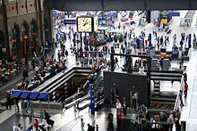 Extensive developments took place during the 19th century. From 1847, the Spanisch-Brötli-Bahn, the first railway on Swiss territory, connected Zurich with Baden, putting the Zürich Hauptbahnhof at the origin of the Swiss rail network. The present building of the Hauptbahnhof (the main railway station) dates to 1871. Zurich’s Bahnhofstrasse (Station Street) was laid out in 1867, and the Zurich Stock Exchange was founded in 1877. Industrialisation led to migration into the cities and to rapid population growth, particularly in the suburbs of Zurich.